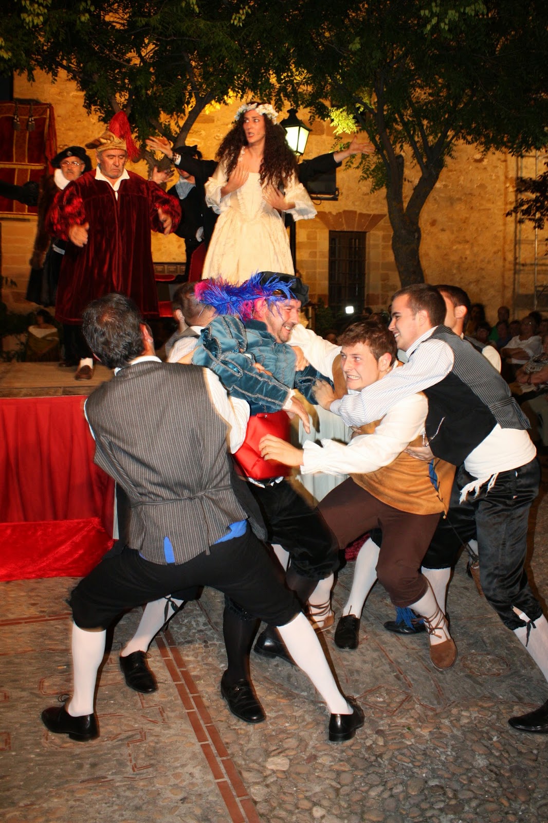 El festejo comenzó con una muestra del rico folklore comarcal, a la que siguió entre ágape y ágape con todos los invitados presentes inmersos en el acontecimiento, la citada representación teatral, que generó una energía colectiva que dispuso a los presentes una vez finalizada ésta, a comer, beber y bailar como sugirió el despechado novio Camacho hasta altas horas de la madrugada. Y así fue.