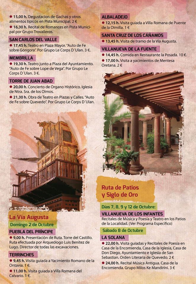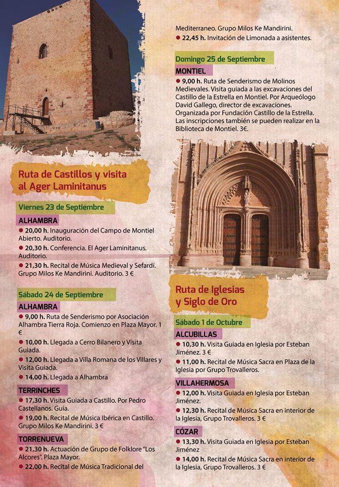 Habrá muchos y muy variadas actividades: teatro, conciertos, recitales, presentaciones de libros, poesía, rutas de senderismo, visitas a yacimientos arqueológicos, castillos e iglesias, etc., todo ello fundido con la pasión e interés de las gentes de la comarca y en unos escenarios asombrosamente bellos y desconocidos, finalizando esta edición en una simbólica carrera por la conservación de la tierra, que se celebrará el último fin de semana y que recorrerá los diferentes pueblos y paisajes que la componen y donde se producirán sorpresas muy positivas.