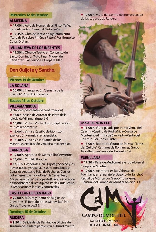 Pero su puesta en valor implica la necesaria apertura hacia otras tierras que están definidas en la zona de amortiguamiento como es el denominado Campo de Montiel Geográfico, pueblos de Albacete colindantes con Ossa de Montiel que se encuentran igualmente en la altiplanicie campomontieleña u otros pueblos de gran trascendencia respecto al Quijote en lo que podemos denominar la Mancha Cervantina. Ejemplo de ello es el Recital de Poetas “Tierras del Quijote” que se editaría que se reunirá en la Venta del Celemín descrita en el Quijote, que aspira a ser símbolo de unión y colaboración entre los lugares descritos.