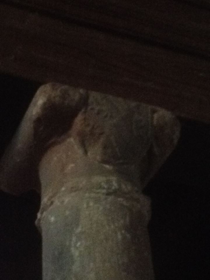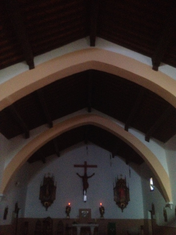 En la clausura de madera de la entrada, ambas inscripciones talladas aluden la siglo XVIII. Florencia, la amable señora que atiende el templo tuvo la amabilidad de escucharme cuando le dije que una de ellas estaba a punto de desprenderse y caer. Me dijo que en la última Semana Santa, al sacar las andas, se llevó un porrazo.