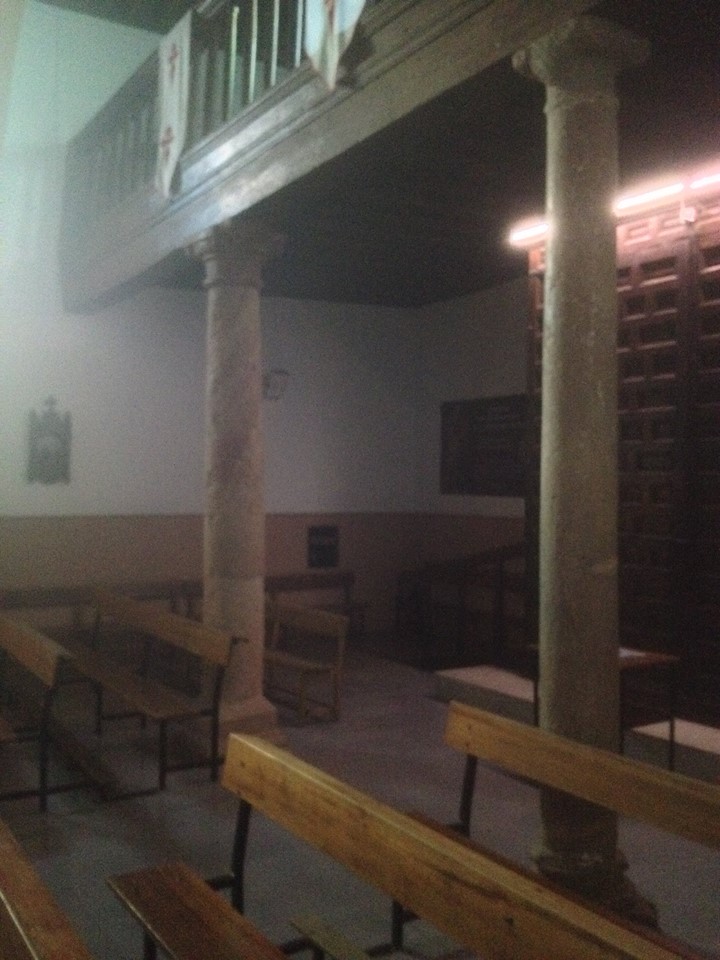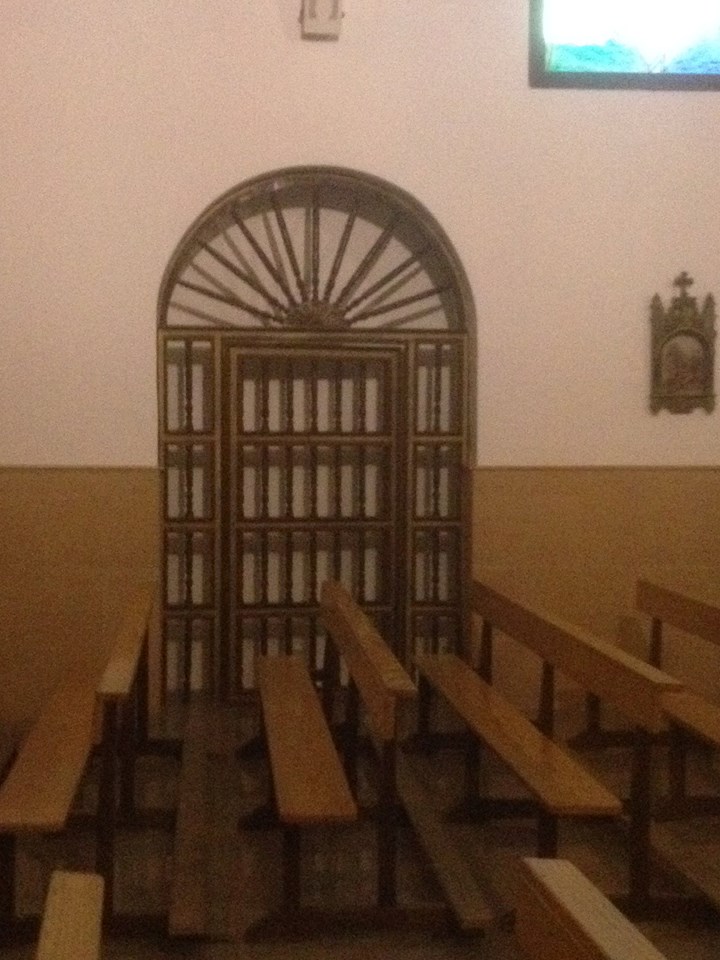Afortunadamente queda señalada la antigua puerta de acceso desde la nave al cementerio y enfrente la bella cancela de madera torneada que da acceso a la popular sacristía, donde Florencia me contó las pérdidas que a lo largo del siglo XX, por avatares de todo tipo, entre otros, la construcción de chalés en las Lagunas para llevarse viejos bancos barrocos. Como en todas partes por desgrascia…