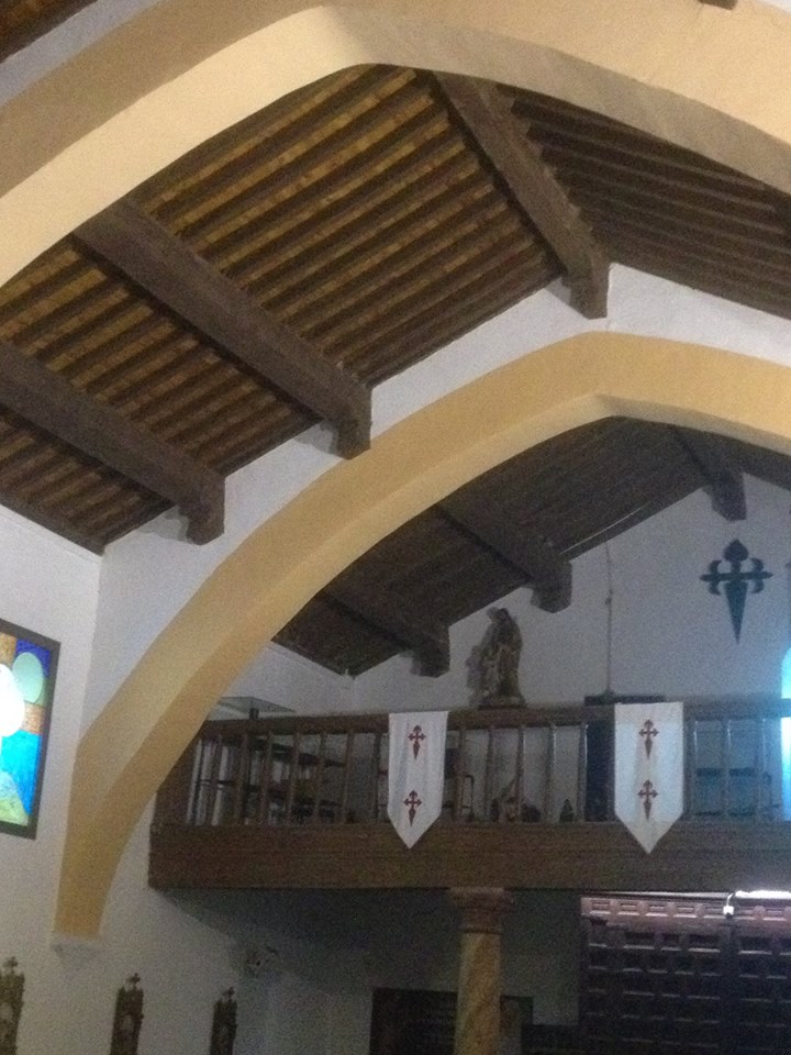 El interior de la iglesia con nave rectangular de salón y ábside recto ha sido desposeída de su encanto original. Hoy ya no se pisan las losas de caliza del suelo ni se ven las tallas medievales de Santiago y La Magdalena. Pero todavía perdura la techumbre mudejar sostenida por arcos fajones apuntados igual que en Alcubillas, siendo ambas los dos mejores y únicos ejemplos de los primeros templos erigidos en la zona por la Orden de Santiago.